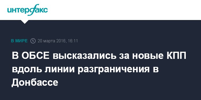 Москва. 20 марта. INTERFAX.RU - Специальная мониторинговая миссия (СММ) ОБСЕ призывает стороны конфликта в Донбассе к открытию новых контрольно-пропускных пунктов вдоль линии соприкосновения, заявил "Интерфаксу" в воскресенье первый заместитель главы СММ ОБСЕ на Украине Александр Хуг.