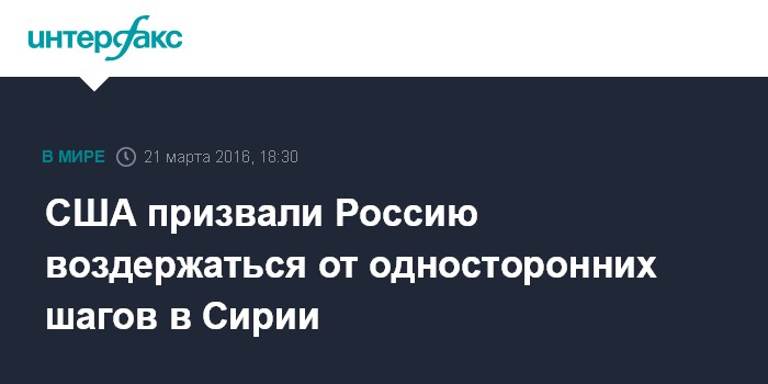 Москва. 21 марта. INTERFAX.RU - США рассчитывают, что Россия воздержится от односторонних действий в Сирии, заявил "Интерфаксу" представитель администрации президента США.