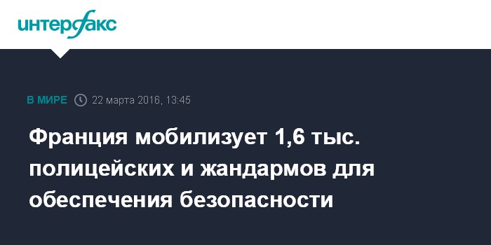 Москва. 22 марта. INTERFAX.RU - Во Франции мобилизованы 1,6 тыс. полицейских после теракта в Брюсселе, заявил во вторник глава МВД Бернар Казнев.