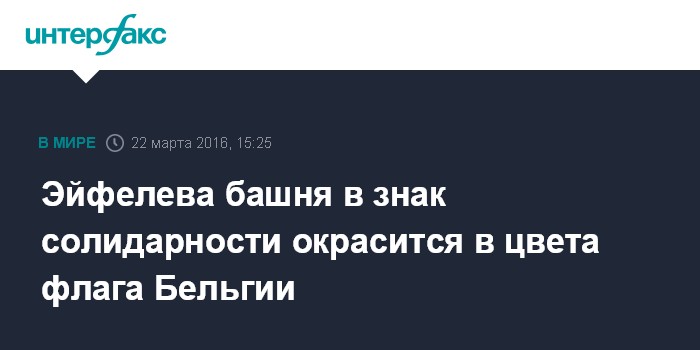 Москва. 22 марта. INTERFAX.RU - Эйфелева башня во вторник вечером будет подсвечена цветами флага Бельгии в знак солидарности после терактов в Брюсселе, сообщила мэр Парижа Анн Идальго.