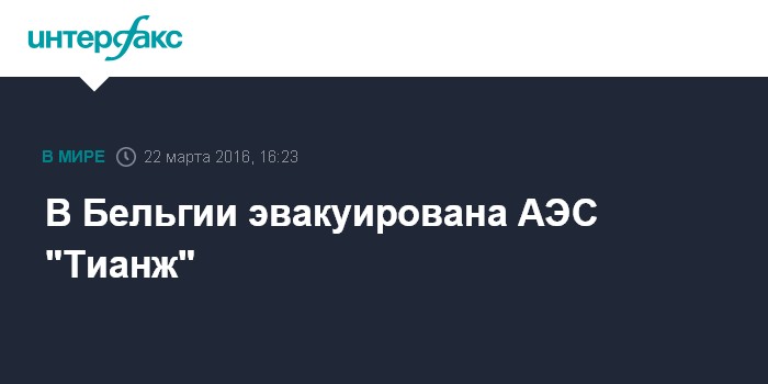 Москва. 22 марта. INTERFAX.RU - В Бельгии проведена эвакуация на АЭС Тианж, сообщается во вторник на сайте местной газеты HLN. Связана ли эвакуация с терактами, произошедшими ранее утром в столице страны, или является запланированной, непонятно.