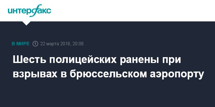 Москва. 22 марта. INTERFAX.RU - Шесть сотрудников бельгийской полиции получили ранения в результате взрывов двух бомб во вторник утром в брюссельском аэропорту "Завентем", сообщают местные СМИ.
