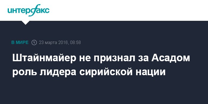 Москва. 23 марта. INTERFAX.RU - Глава МИД ФРГ Франк-Вальтер Штайнмайер не видит нынешнего президента Сирии Башара Асада в качестве приемлемой для всех сирийцев фигуры в будущем руководстве страны.