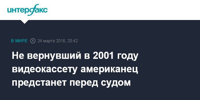 Не вернувший в 2001 году видеокассету американец предстанет перед судом