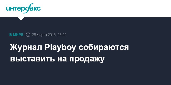 Москва. 25 марта. INTERFAX.RU - Американская компания Playboy Enterprises Inc, издатель одноименного журнала, изучает возможность продажи, сообщает The Wall Street Journal со ссылкой на свои источники.