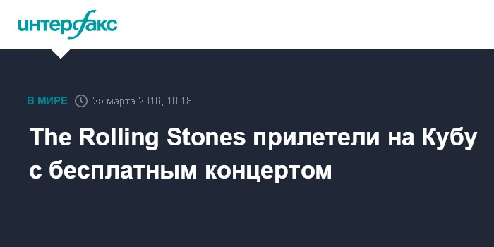Москва. 25 марта. INTERFAX.RU - Частный самолет британской рок-группа The Rolling Stones приземлился в Гаване, где музыканты дадут бесплатный концерт, сообщает в пятницу агентство AP.