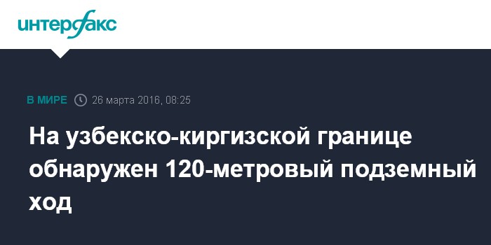 Москва. 26 марта. INTERFAX.RU - Ташкент. 26 марта. ИНТЕРФАКС - Подземный тоннель обнаружен на узбекско-киргизской границе, через который могла осуществляться переправка боевиков и оружия, сообщает в субботу пресс-служба Комитета по охране государственной границы Службы национальной безопасности (КОГГ СНБ) Узбекистана.