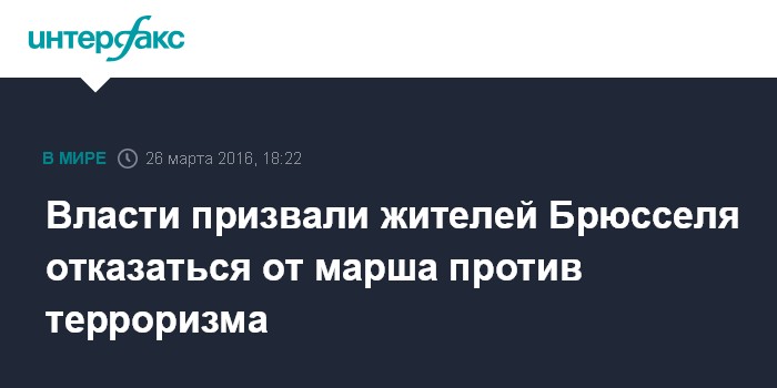 Москва. 26 марта. INTERFAX.RU - Глава МВД Бельгии Ян Ямбон и бургомистр Брюсселя Иван Майор обратились к населению с призывом отказаться от участия в марше солидарности против терроризма и в поддержку жертв терактов 22 марта.