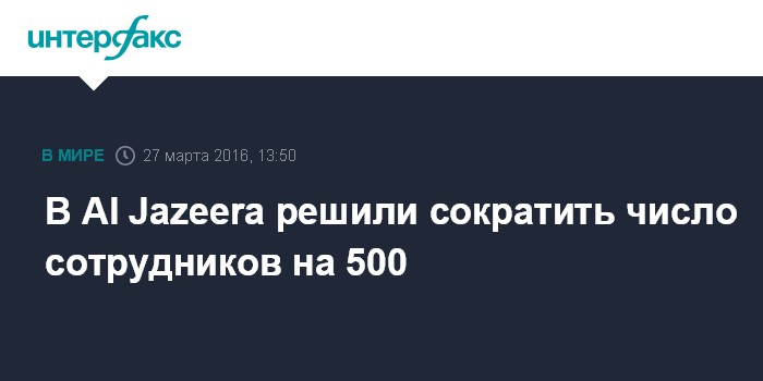 Москва. 27 марта. INTERFAX.RU - Руководство межарабского телеканала Al Jazeera объявило в воскресенье о решении сократить число сотрудников на 500 человек.