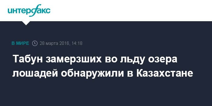 Москва. 28 марта. INTERFAX.RU - В озере близ города Экибастуза Павлодарской области (Казахстан) обнаружили замерзшими во льду более 40 лошадей, пропавших в конце 2015 года, сообщила пресс-служба областного департамента внутренних дел.