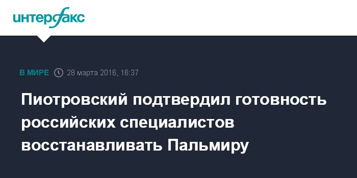 Пиотровский подтвердил готовность российских специалистов восстанавливать Пальмиру