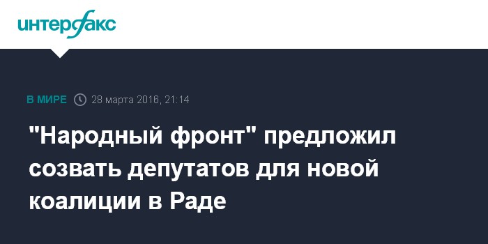 Москва. 28 марта. INTERFAX.RU - Фракция "Народный фронт" настаивает на создании новой парламентской коалиции с новым коалиционным соглашением, сообщила депутат этой фракции Виктория Сюмар.