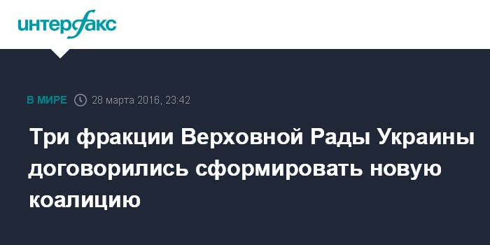 Москва. 28 марта. INTERFAX.RU - На Украине парламентские фракции "Блок Петра Порошенко", "Народный фронт" и "Батькивщина" договорились о формировании новой коалиции, заявляет руководитель фракции "Радикальной партии" Олег Ляшко.