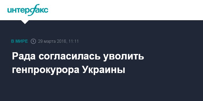 Москва. 29 марта. INTERFAX.RU - Верховная Рада дала согласие на увольнение президентом Украины Петром Порошенко генерального прокурора Украины Виктора Шокина. За соответствующий проект постановления на заседании во вторник проголосовали 289 народных депутатов.