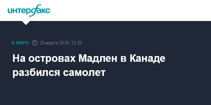Москва. 29 марта. INTERFAX.RU - Легкий самолет разбился на островах Мадлен в канадской провинции Квебек. Как передает CBC, на борту находились семь человек.