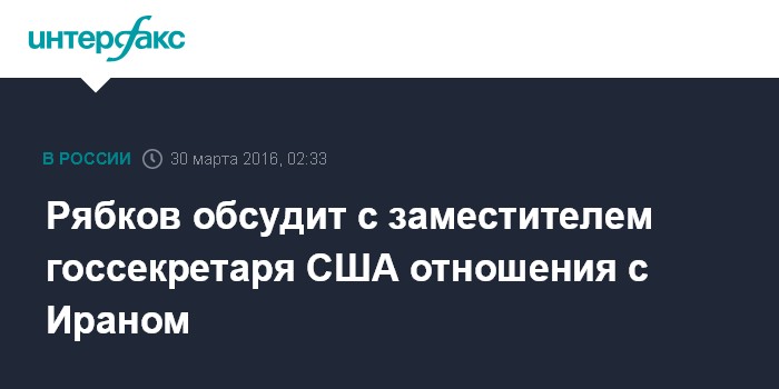 Рябков обсудит с заместителем госсекретаря США отношения с Ираном