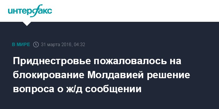 Согласно сообщению, 26 февраля Тирасполь представил представителям Молдавии предложения по решению накопившихся проблем в области железнодорожных перевозок, разработанные МИД, таможенным комитетом ПМР и Приднестровской железной дороги.