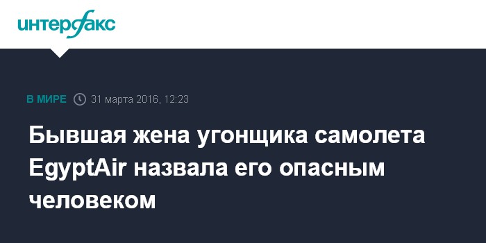 Москва. 31 марта. INTERFAX.RU - Бывшая супруга египтянина, угнавшего ранее на этой неделе аэробус EgyptAir, назвала его опасным человеком, передает в четверг агентство Associated Press.