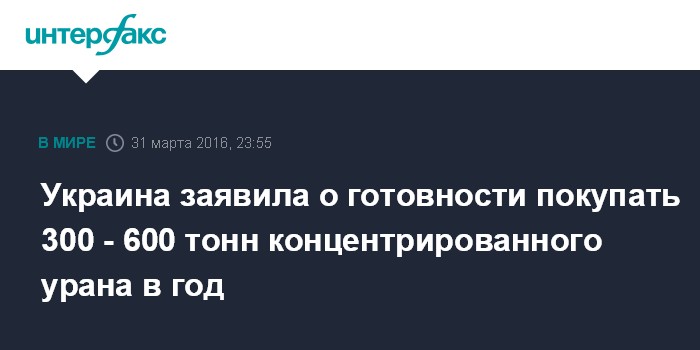 Украина заявила о готовности покупать 300 - 600 тонн концентрированного урана в год