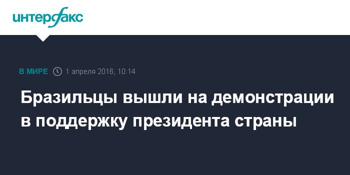 Москва. 1 апреля. INTERFAX.RU - Десятки тысяч людей по всей Бразилии вышли на демонстрации в поддержку президента Дилмы Русеф, сообщают латиноамериканские СМИ.