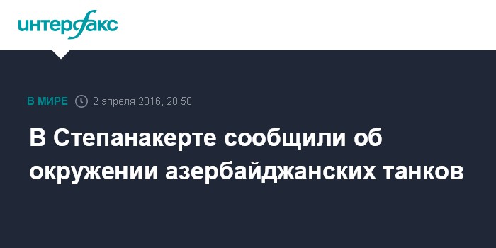 Москва. 2 апреля. INTERFAX.RU - Подразделение азербайджанской армии, в составе которого пять танков, попало в окружение на северо-восточном направлении линии фронта, сообщили "Интерфаксу" источники в силовых структурах непризнанной Нагорно-Карабахской республики.