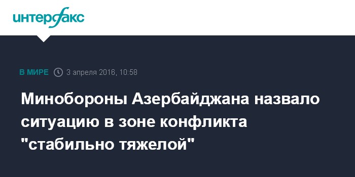 Москва. 3 апреля. INTERFAX.RU - Обстановка в зоне карабахского конфликта остается сложной, заявляют в воскресенье в Минобороны Азербайджана.