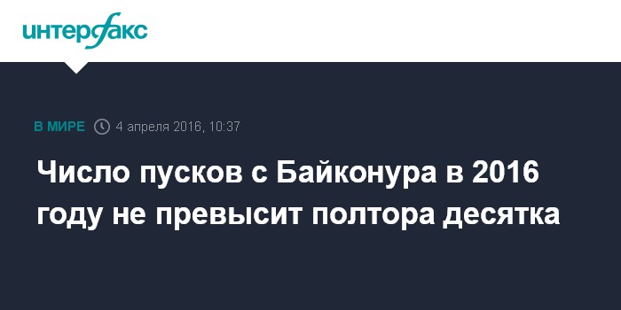 Число пусков с Байконура в 2016 году не превысит полтора десятка