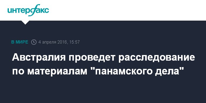 Москва. 4 апреля. INTERFAX.RU - Австралийское налоговое управление проведет масштабное расследование в отношении более чем 800 граждан страны в связи с тем, что их имена упоминаются в документах панамской юридической фирмы Mossack Fonseca.