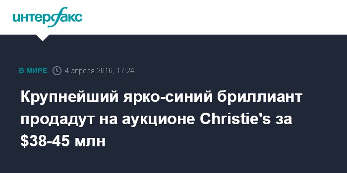 Москва. 4 апреля. INTERFAX.RU - Крупнейший в мире ярко-синий бриллиант Oppenheimer Blue массой 14,62 карата будет выставлен на женевский аукцион драгоценностей Christie's 18 мая.