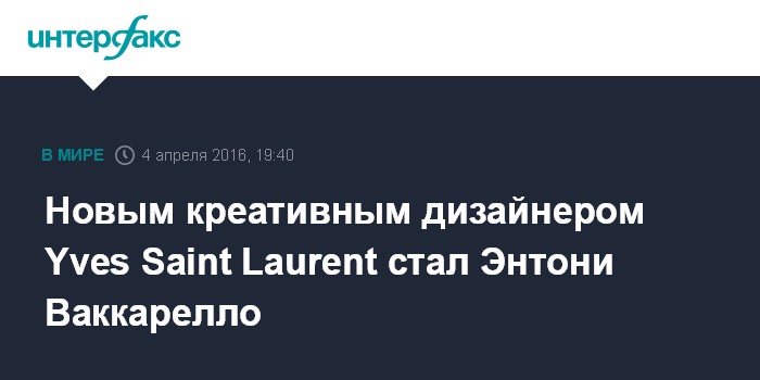 Новым креативным дизайнером Yves Saint Lаurent стал Энтони Ваккарелло