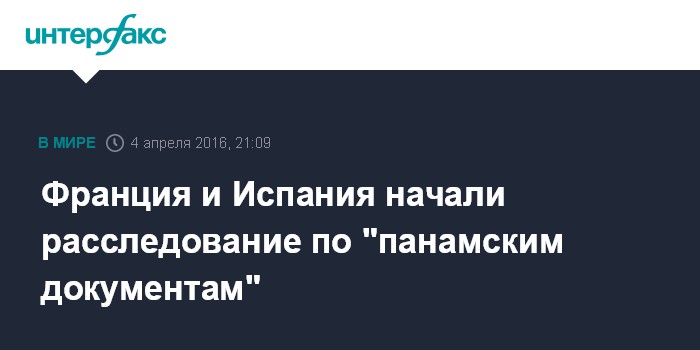 Москва. 4 апреля. INTERFAX.RU - Государственная прокуратура Испании инициировала расследование предполагаемых случаев отмывания денег, о которых говорится в "панамских документах".