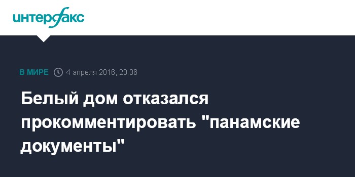 Москва. 4 апреля. INTERFAX.RU - Белый дом отказался прокомментировать изложенные в "панамских документах" данные о предполагаемых финансовых махинациях, в том числе касающиеся России, и призвал к прозрачности в мировой финансовой системе.