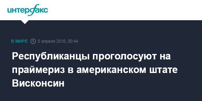 Москва. 5 апреля. INTERFAX.RU - Праймериз Республиканской партии США состоятся во вторник в штате Висконсин. В данном штате на кону голоса 42 делегатов.