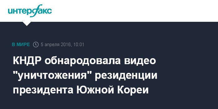Москва. 5 апреля. INTERFAX.RU - Северная Корея выложила в интернете пропагандистский видеоролик, на котором запечатлен "артиллерийский обстрел" резиденции президента Южной Кореи Пак Кын Хе в Сеуле, сообщают во вторник южнокорейские СМИ.