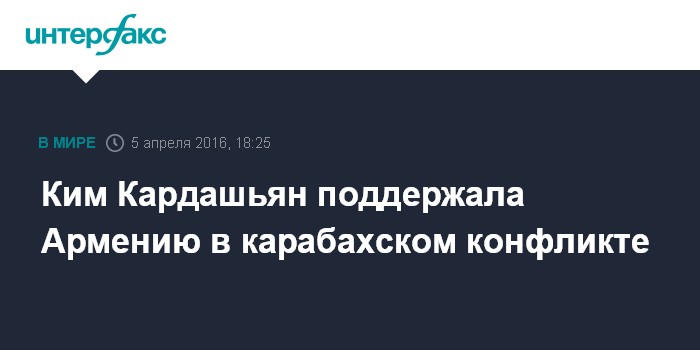 Москва. 5 апреля. INTERFAX.RU - Американская звезда реалити-шоу Ким Кардашьян, имеющая армянские корни, поддержала Ереван в карабахском конфликте.