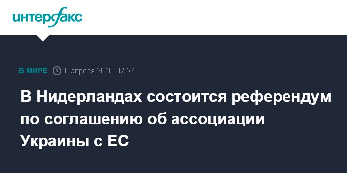 Москва. 6 апреля. INTERFAX.RU - Власти Нидерландов проведут в среду консультативный референдум по соглашению об ассоциации между Украиной и ЕС.