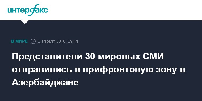 Москва. 6 апреля. INTERFAX.RU - Представители около 30 мировых СМИ ознакомятся в среду с ситуацией на линии армяно-азербайджанского фронта, где в течение последних дней происходили интенсивные боевые действия.