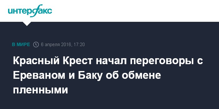 Москва. 6 апреля. INTERFAX.RU - Международный комитет Красного Креста (МККК) ведет переговоры с Арменией и Азербайджаном, оказывая содействие в обмене пленными и телами погибших в зоне карабахского конфликта.