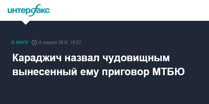 Москва. 6 апреля. INTERFAX.RU - Приговоренный к 40 годам тюрьмы бывший лидер боснийских сербов Радован Караджич назвал вердикт Международного трибунала по бывшей Югославии (МТБЮ) чудовищным, сообщают европейские СМИ.