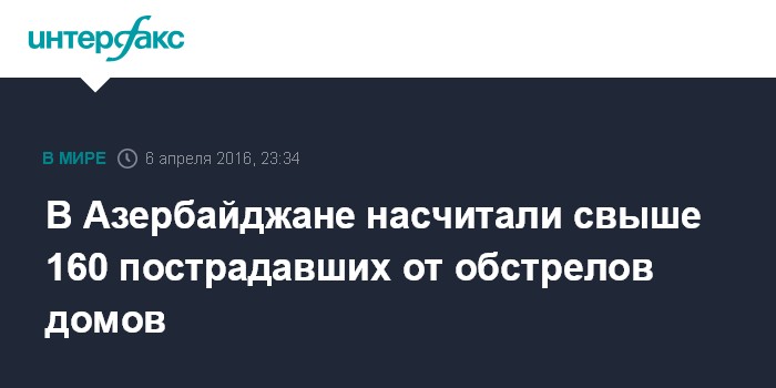 Москва. 6 апреля. INTERFAX.RU - В Тертерском районе Азербайджана со 2 апреля 2016 года в результате обстрелов армянской стороны серьезно пострадали 162 дома, сообщил агентству "Интерфакс" глава Исполнительной власти района Мустагим Мамедов.
