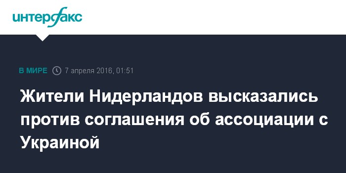 Жители Нидерландов высказались против соглашения об ассоциации с Украиной