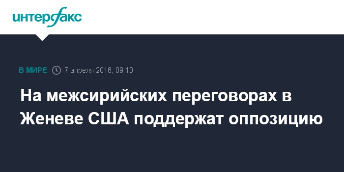 Москва. 7 апреля. INTERFAX.RU - США продолжат поддерживать сирийскую оппозицию в ходе предстоящего раунда межсирийских переговоров в Женеве, который, как ожидается, состоится в апреле.