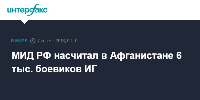 Москва. 7 апреля. INTERFAX.RU - Террористическая организация "Исламское государство" (ИГ, запрещена в РФ) с конца 2015 года укрепляет свои позиции в Афганистане, в настоящее время там насчитывается порядка 6 тыс. боевиков, заявил статс-секретарь - замминистра иностранных дел РФ Григорий Карасин.