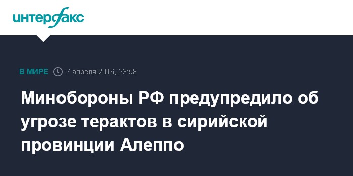 Минобороны РФ предупредило об угрозе терактов в сирийской провинции Алеппо