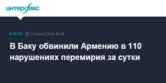 5 апреля в Баку и столице непризнанной Нагорно-Карабахской республики Степанакерте заявили о достижении соглашения о прекращении огня в зоне карабахского конфликта. Однако течение среды и утром в четверг стороны конфликта обменивались взаимными обвинениями в нарушении перемирия.