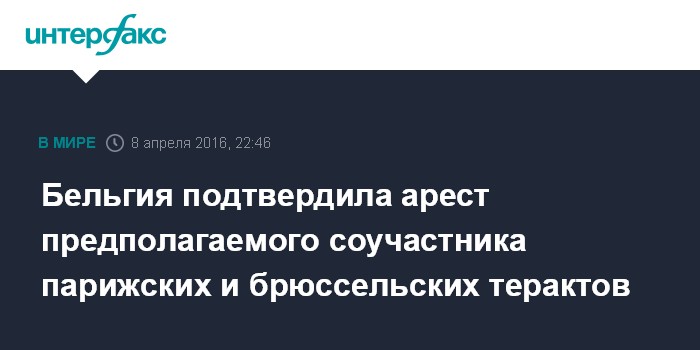 Москва. 8 апреля. INTERFAX.RU - Власти Бельгии в пятницу вечером подтвердили, что арестовали предполагаемого террориста Мухаммеда Абрини, сообщают местные СМИ.