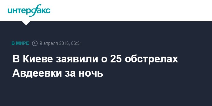 Москва. 9 апреля. INTERFAX.RU - Пресс-центр силовой операции украинских военных на юго-востоке страны опубликовал в субботу утром на своей странице в Facebook сообщение, в котором утверждается, что якобы в пятницу по позициям украинских военных 73 раза открывался огонь, наибольшее количество обстрелов пришлось на Авдеевку.