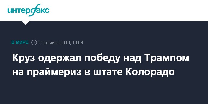 Москва. 10 апреля. INTERFAX.RU - Сенатор-республиканец от штата Техас Тед Круз накануне победил на первичных выборах (праймериз) в штате Колорадо, обойдя своего соперника миллиардера Дональда Трампа, сообщает в воскресенье американский телеканал CBS.