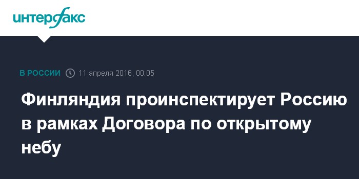 Финляндия проинспектирует Россию в рамках Договора по открытому небу
