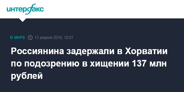 Россиянина задержали в Хорватии по подозрению в хищении 137 млн рублей